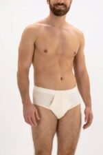 Hard-to-find organic briefs!  Men’s organic cotton briefs in Natural color with fully covered elastic waistband), made out of the softest organic cotton. Briefs are buttery soft and smooth and feature a fully functioning fly. The waistband is 1.2′ tall latex-free and fully covered in the same fabric.
